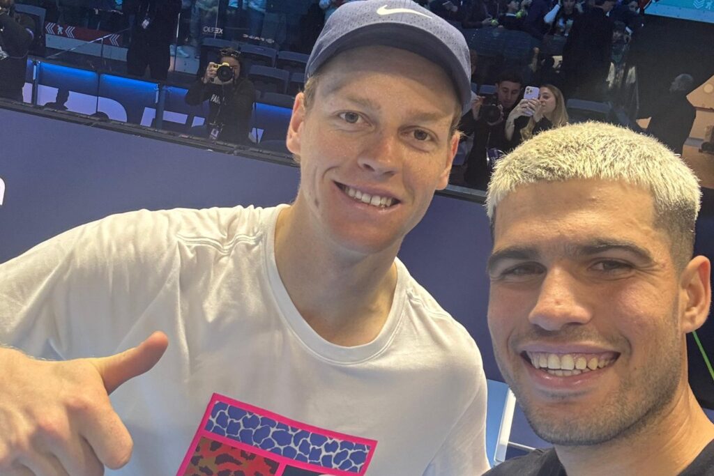 Turim (Itália) – Principais favoritos ao título no ATP Finals, o italiano Jannik Sinner e o espanhol Carlos Alcaraz estão em grupos opostos na competição, só podem se cruzar a partir das semifinais e por isso aproveitaram para treinar juntos na preparação para o torneio.